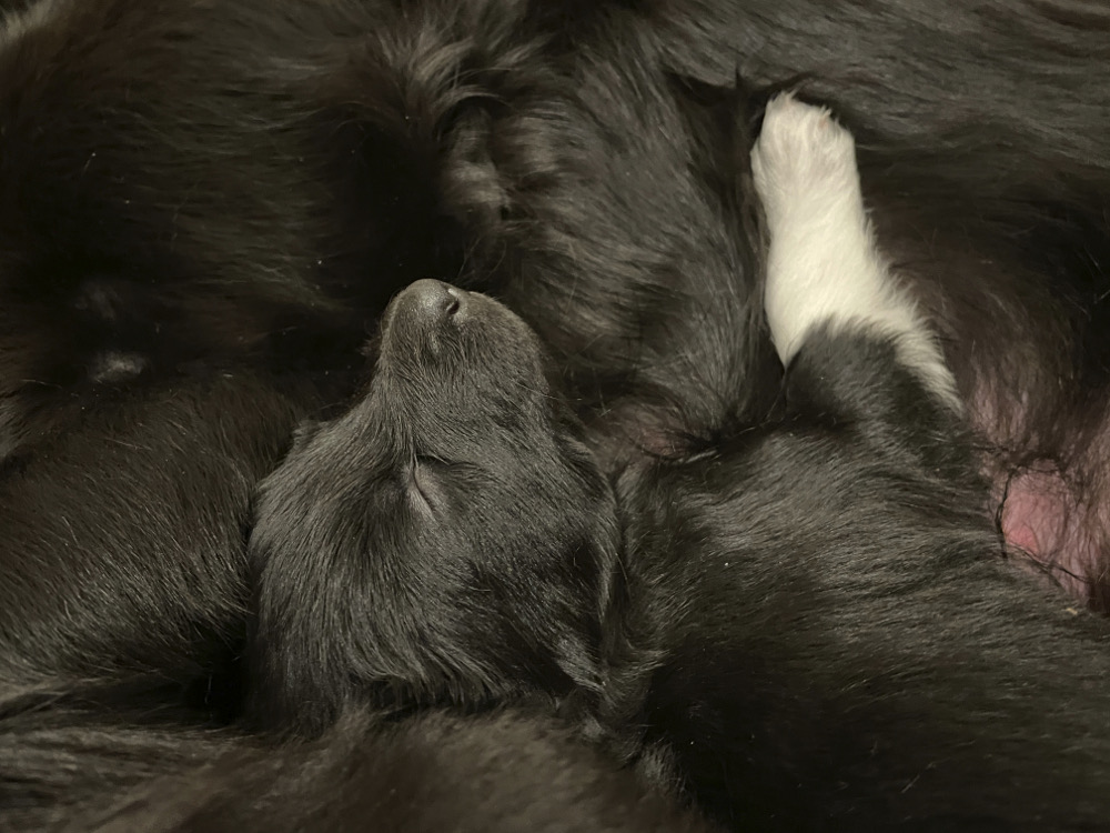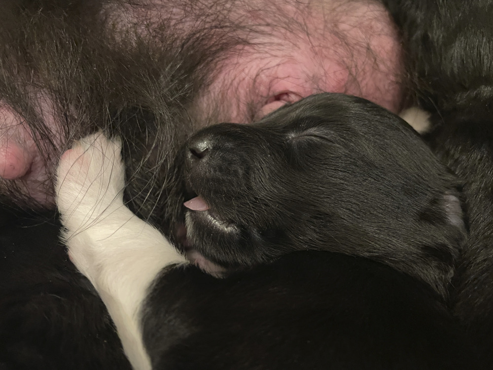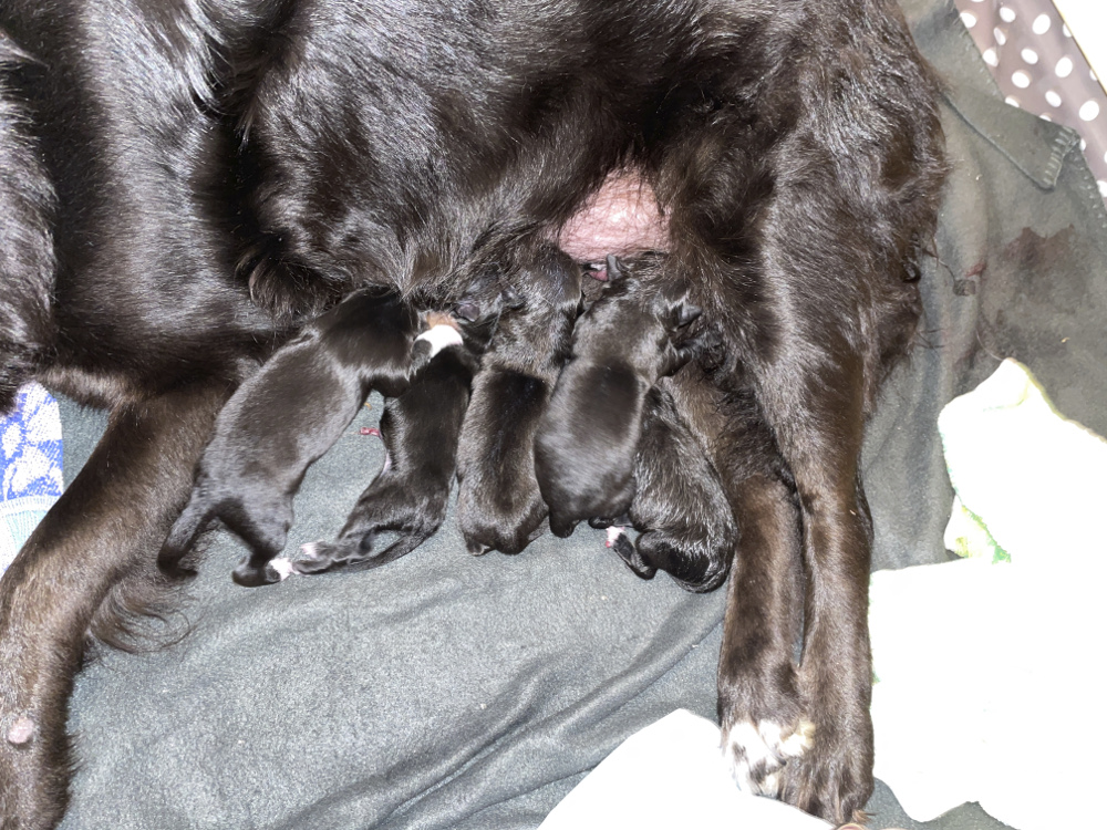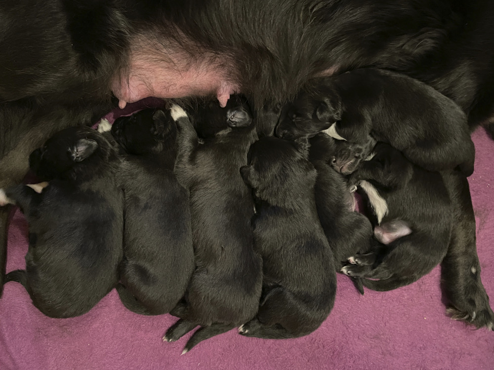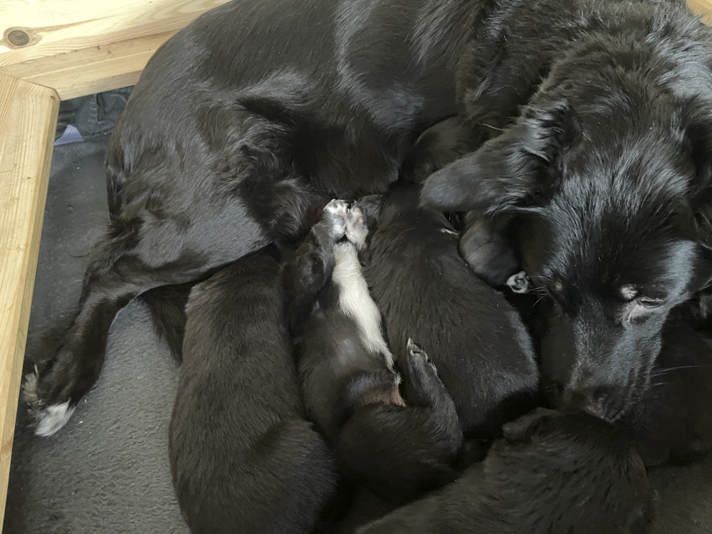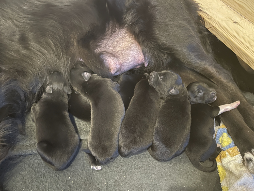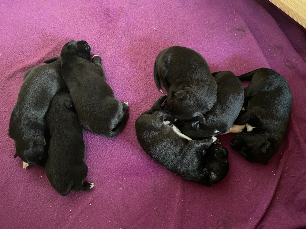 Tag 129.11.2021Heute ist es soweit. Nachdem der Vormittag noch ruhig verlief, fingen bei Emma am Nachmittag die Wehen an. Um 15:39 Uhr kam der erste Welpe zur Welt, um 17:05 Uhr, 17:54 Uhr, 18:32 Uhr und 18:59 Uhr kamen weitere Welpen auf die Welt.