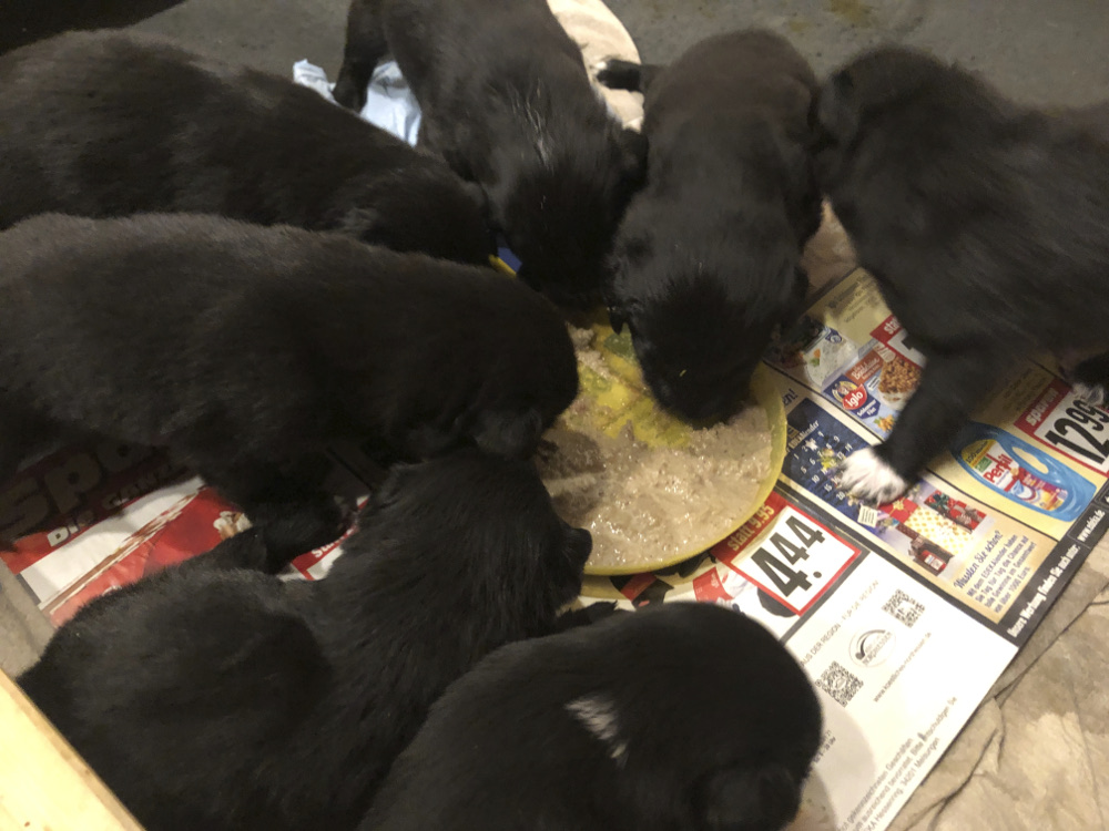 20.12.2021Das erste mal gibt's Brei aus Welpenfutter und Welpenmilch - es kommen ja schließlich schon die ersten Zähne. Lecker war es!