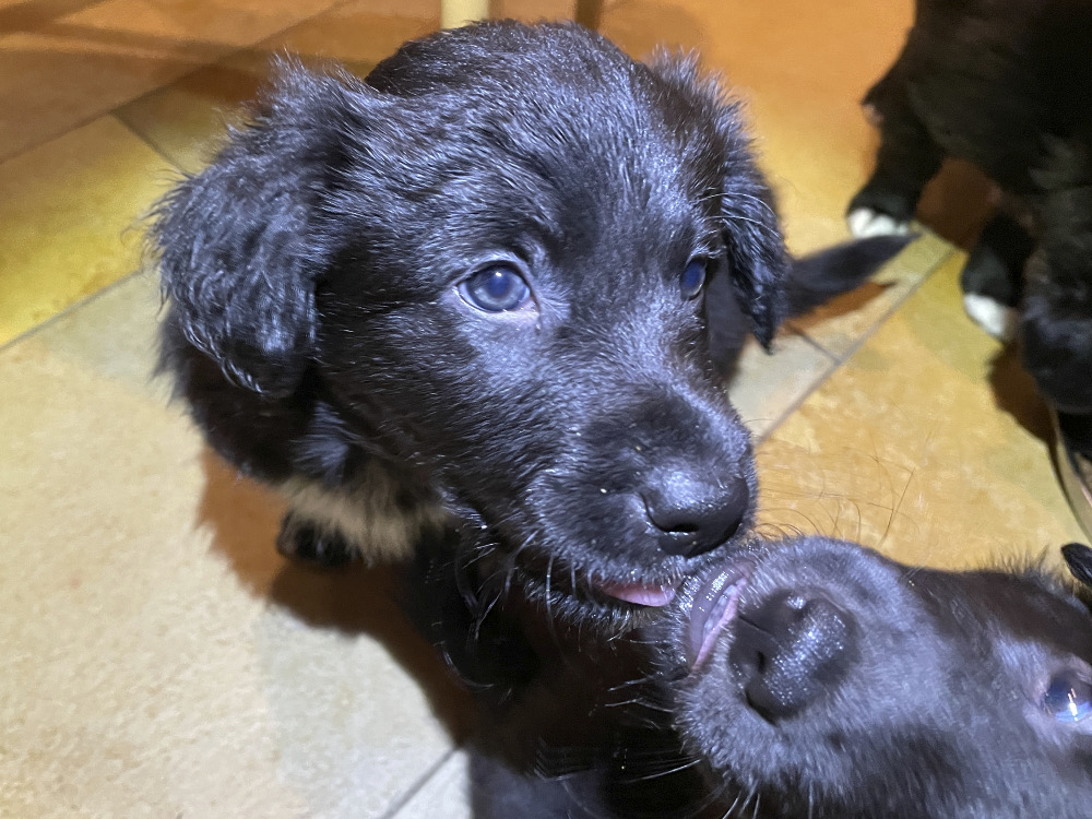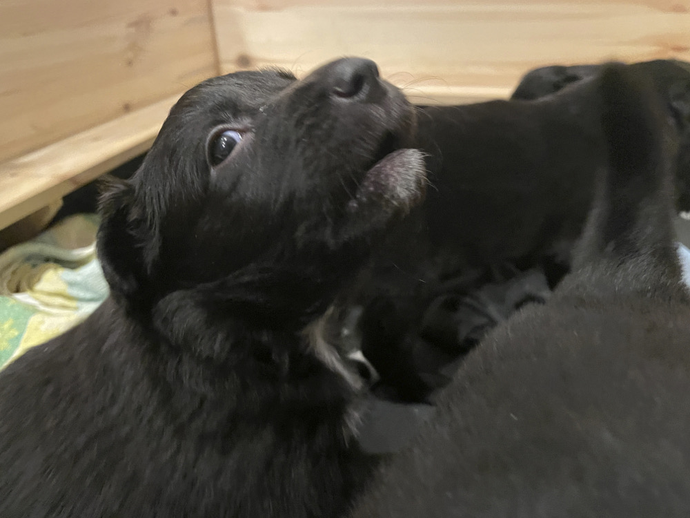 Seit gestern beginnen die Welpen langsam ihre Augen zu öffnen.