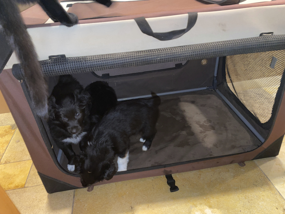 11.01.2022Schon mal die Hundebox kennenlernen, denn bald wird das erste mal Auto gefahren.
