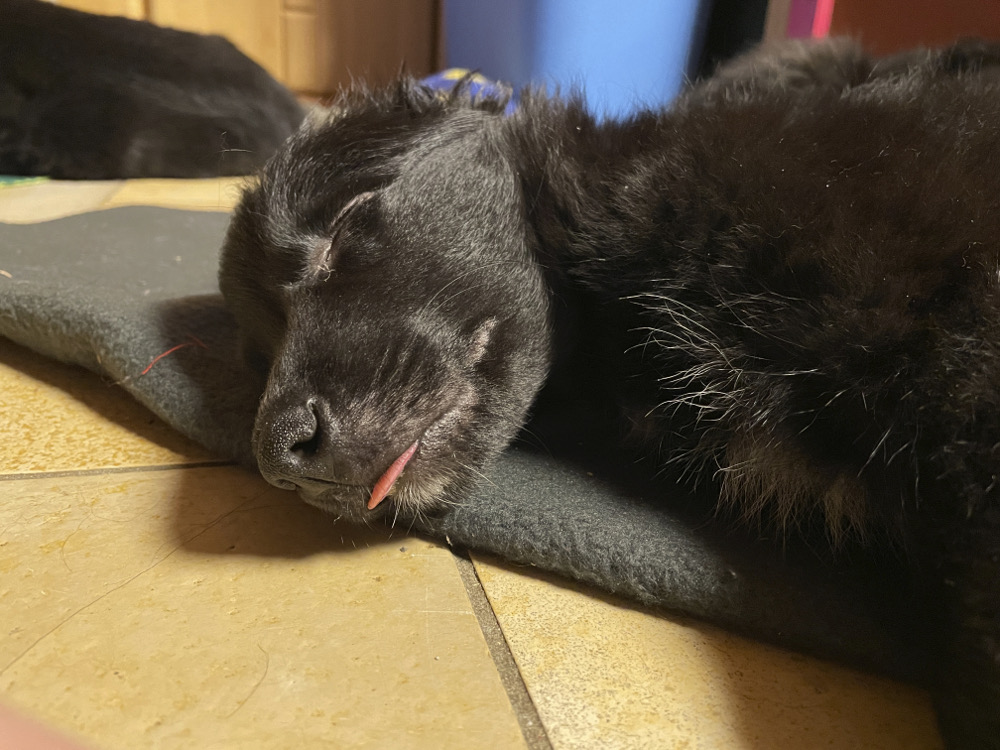 02.02.2022Akira streckt beim Schlafen die Zunge raus.